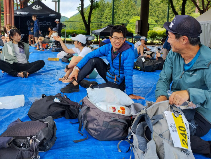 ゴール後は会場内に設置されたテントで野宿。5月なので着込めばなんとか寒さに対応できましたが、寝袋などを用意しておくべきでした💦