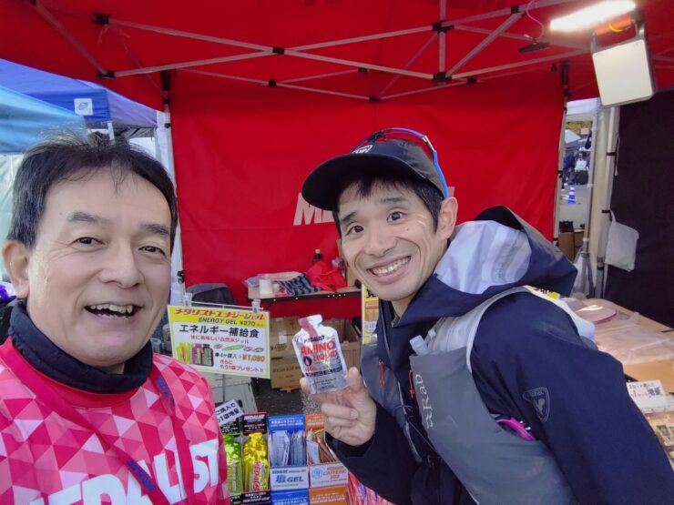 スタートする直前まではレインウェアを羽織って待機していましたが、走り出す直前にいつものノースリーブ+短パン+アームカバーのスタイルになって走り出しました!