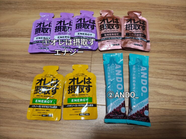 メインはエナジージェルです。使い慣れたアイテムを選んでいきます。