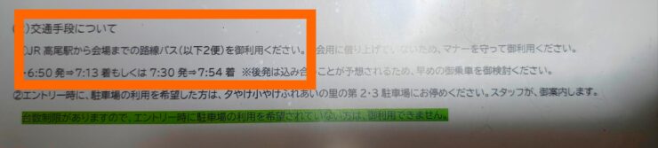 以前のTOKYO八峰マウンテントレイルの時はシャトルバスが出ていましたが、今回の八王子陣馬トレイルはJR高尾駅から路線バスで向かいます。