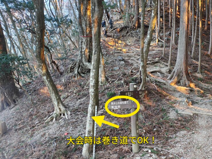 大会当日、高水山も巻きでOKですが、ここもピークを踏むことに😅