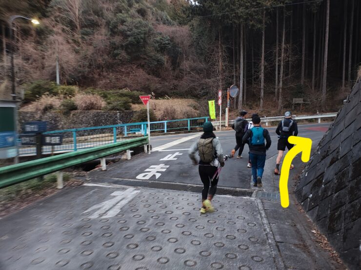 下りたところ〜御岳駅の間は大会当日の選手同士のすれ違い区間となります。