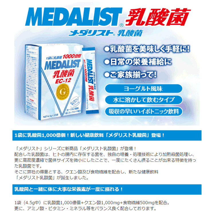 メダリストと言えば、クエン酸ドリンクで有名ですね!メダリストシリーズは色々な商品を愛用していますが、「メダリスト乳酸菌」は初めてとなります。